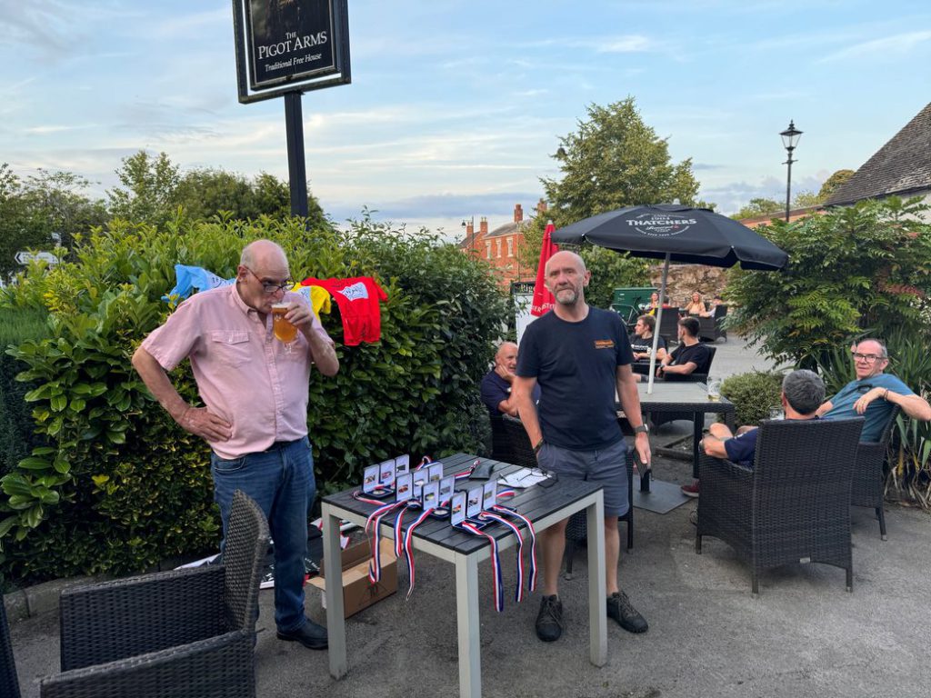We were then welcomed by the landlord of the Pigot Arms for the presentations and speeches which took place in the beer garden in the late evening sunshine. Unfortunately, the race finished too late for us to be able to sample their menu but we were all able to quench our thirst with a wide range of alcoholic and non-alcoholic drinks.